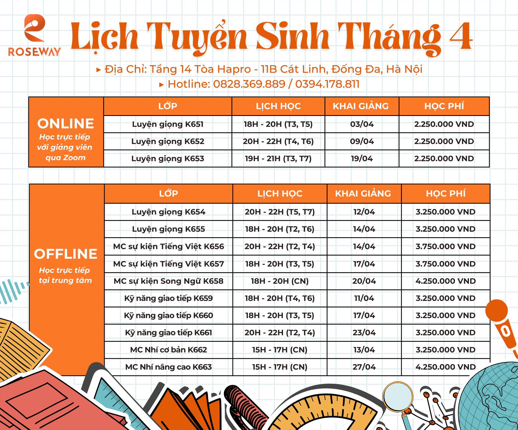 Lịch khai giảng